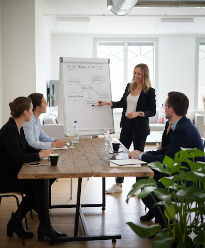 Jag har haft förmånen att få jobba med många härliga företag, kommuner och organisationer inom besöksnäringen. Genom mina föreläsningar och workshops har jag fått inspirera, dela idéer och tillsammans med deltagarna hitta nya sätt att använda AI och digitala verktyg för att utvecklas.